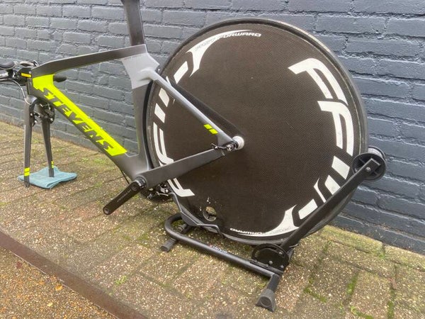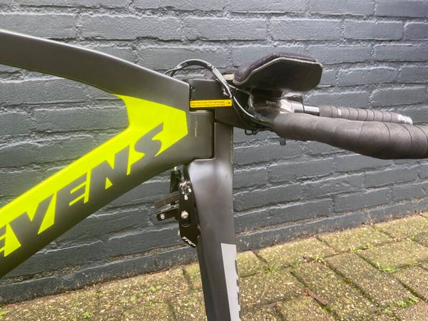 - Frame: Stevens Super Trofeo, maat S – ultrastijf en aerodynamisch, geoptimaliseerd voor tijdritten en triatlons